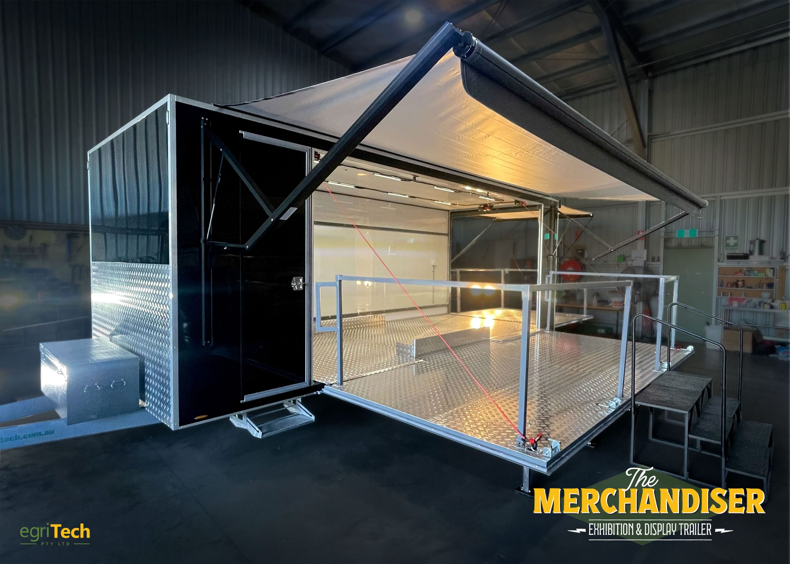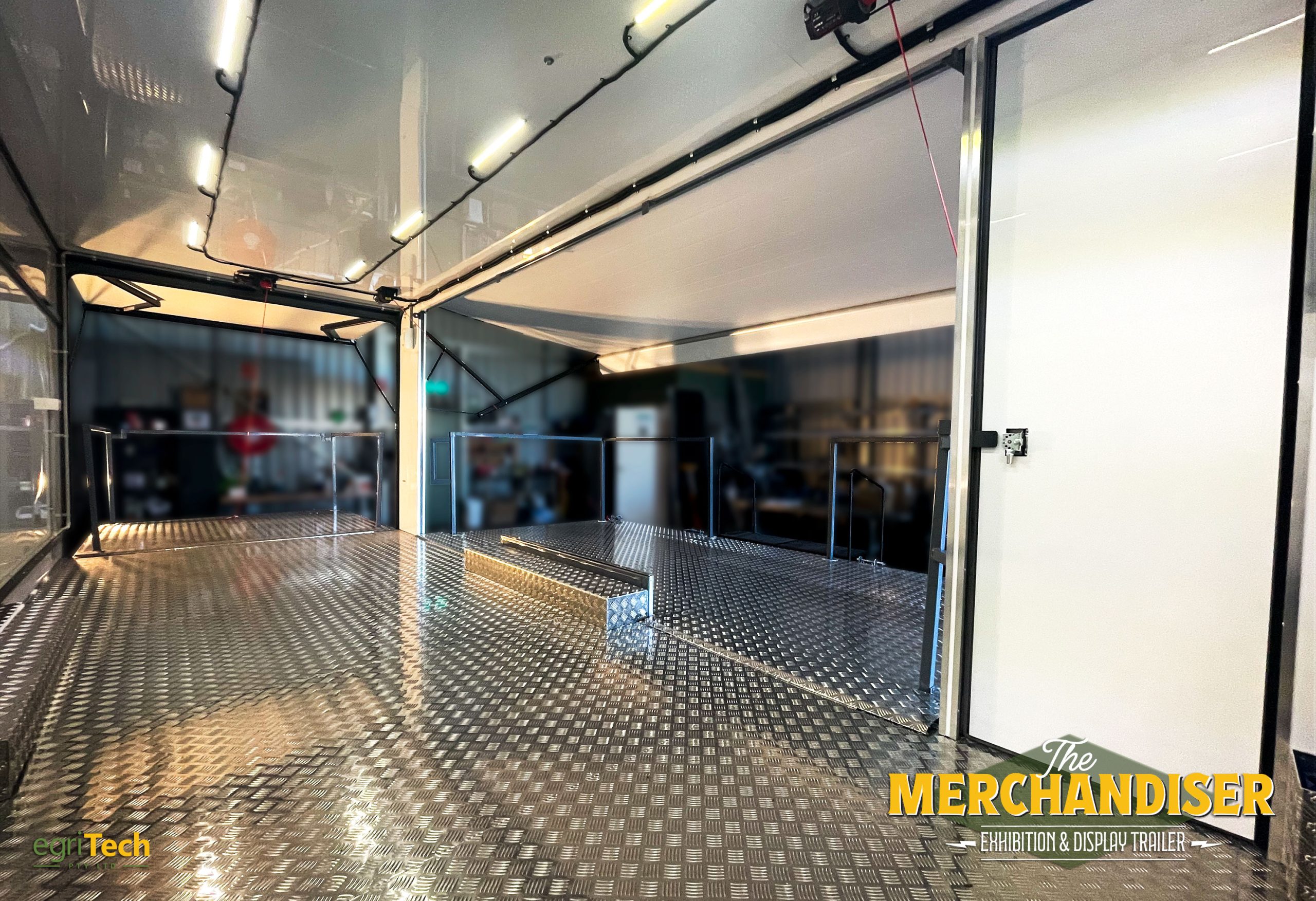 Featuring a sleek shopfront design with fully fold-down side and rear doors, the Merchandiser instantly expands from a compact 14.95m² footprint to an impressive 28.79m² display space, almost doubling your show area without doubling your stress levels.